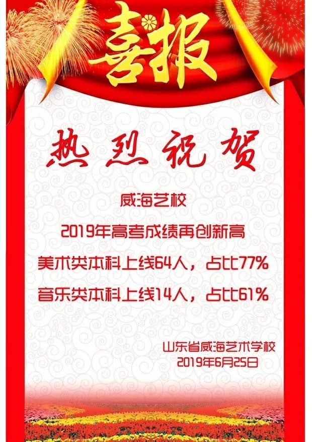 6月24日,2019年高考录取分数线公布,喜讯随即从山东省威海艺术学校传出。